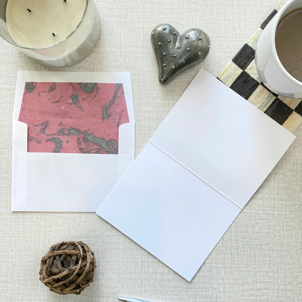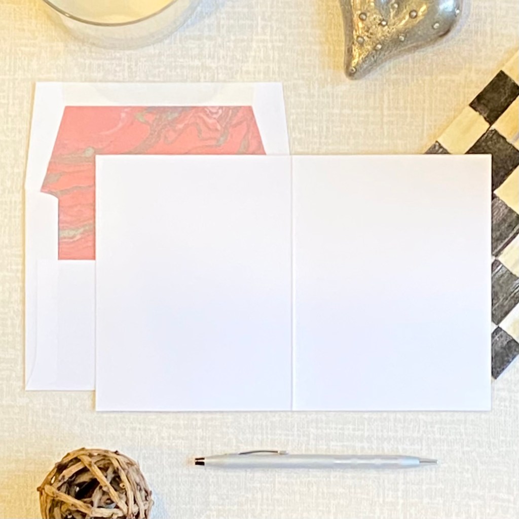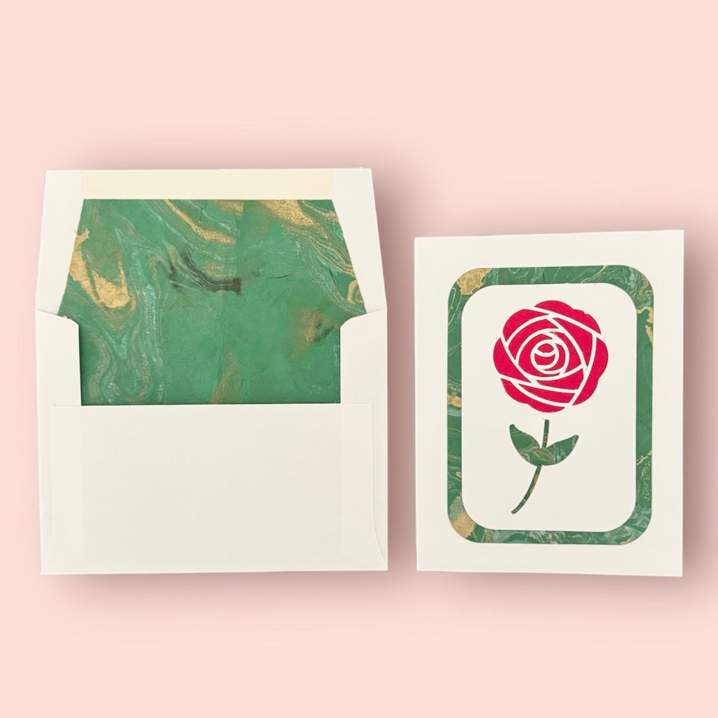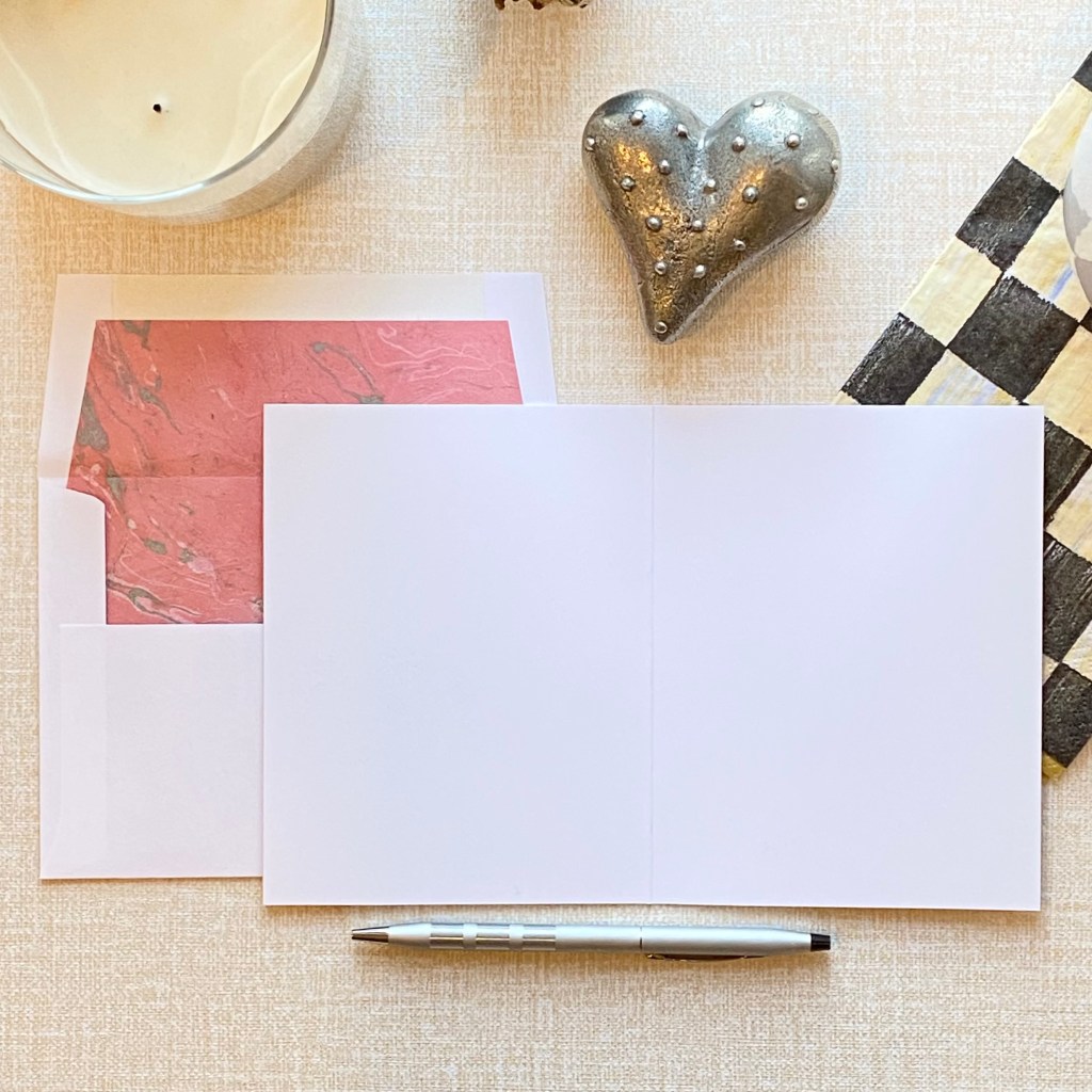 Our handmade greeting cards feature intricate die-cut designs and are adorned with handmade accent paper. Each A2 sized card (4.25″ x 5.5″) is meticulously fashioned on 100# weight paper and comes with a fully lined coordinating envelope, adding a touch of elegance to any heartfelt message.
