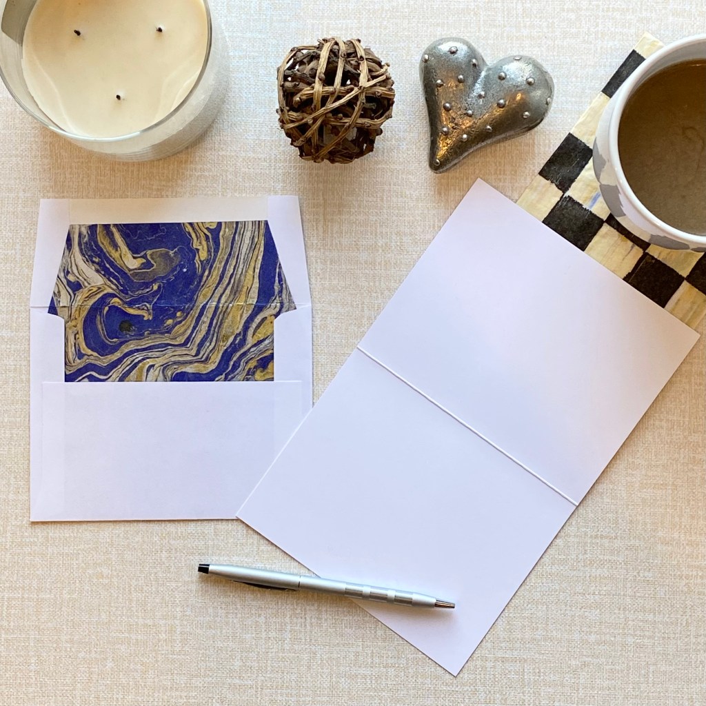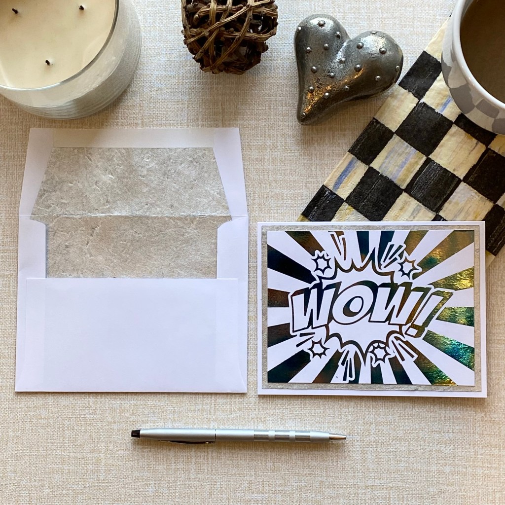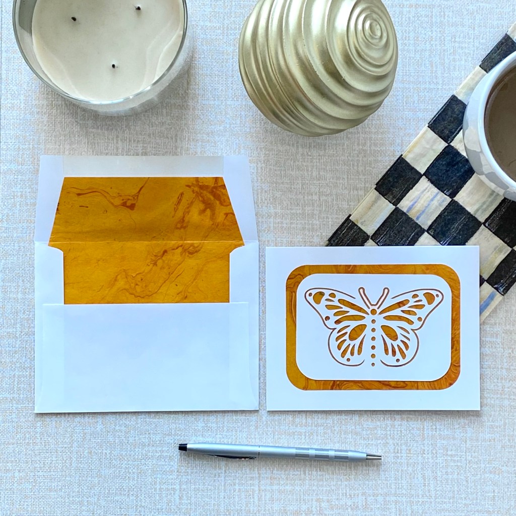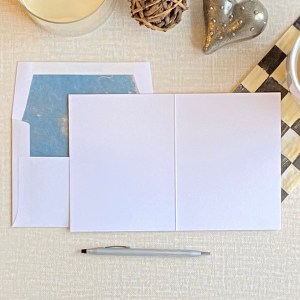 Our handmade greeting cards feature intricate die-cut designs and are adorned with handmade accent paper. Each A2 sized card (4.25″ x 5.5″) is meticulously fashioned on 100# weight paper and comes with a fully lined coordinating envelope, adding a touch of elegance to any heartfelt message.