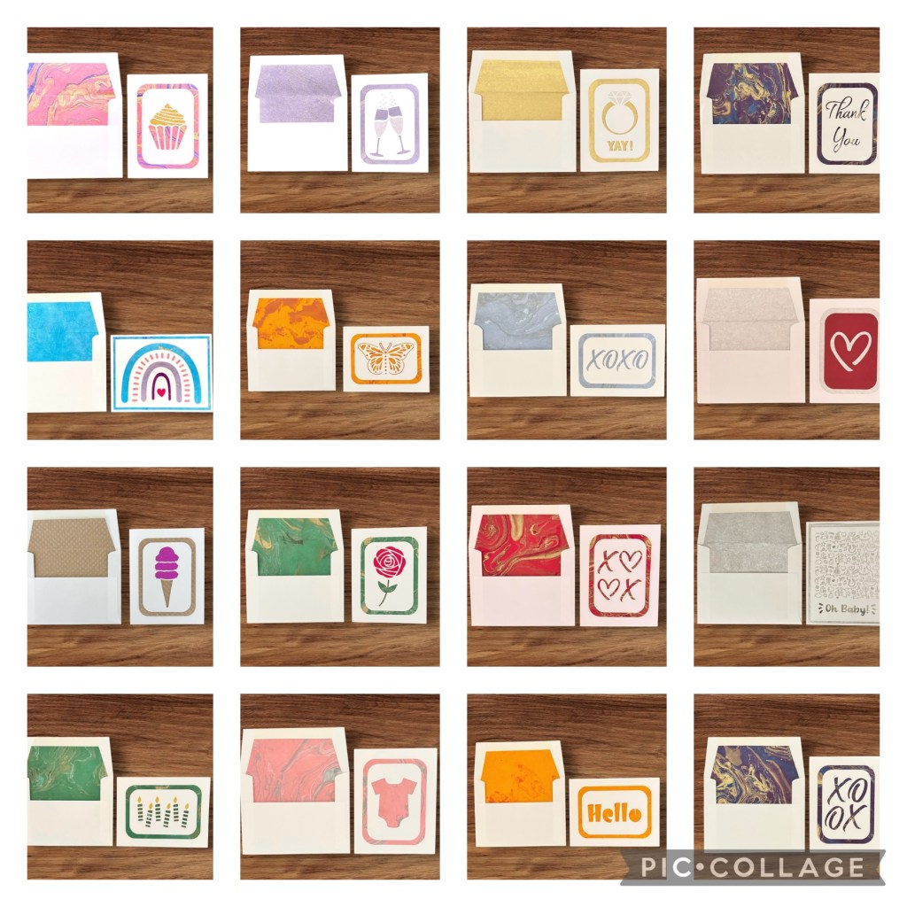 Because each card is handmade, custom colors and combinations are available upon request. Please reach out to us directly with any custom order requests or questions.
